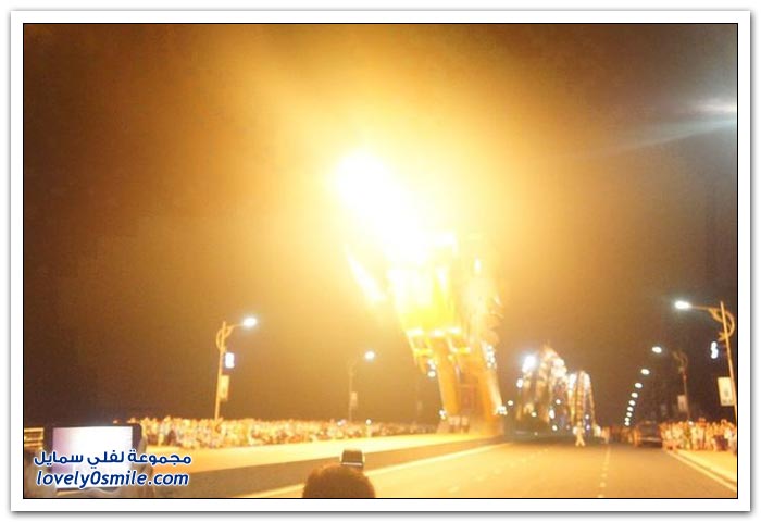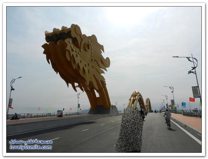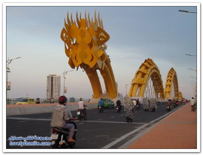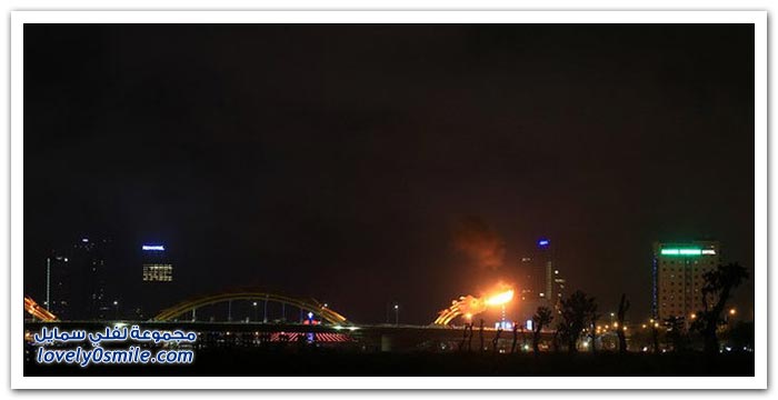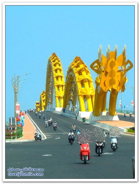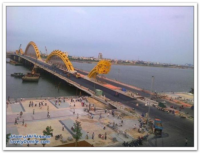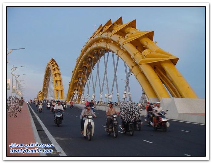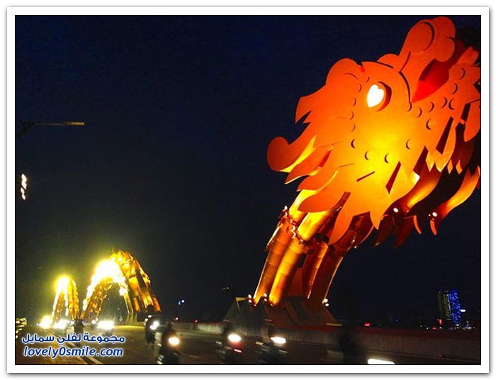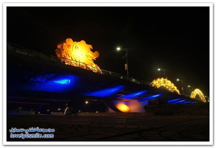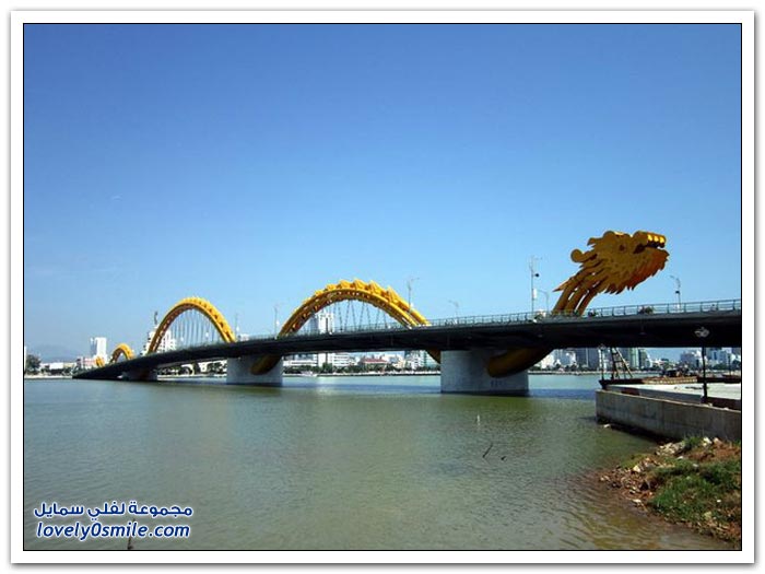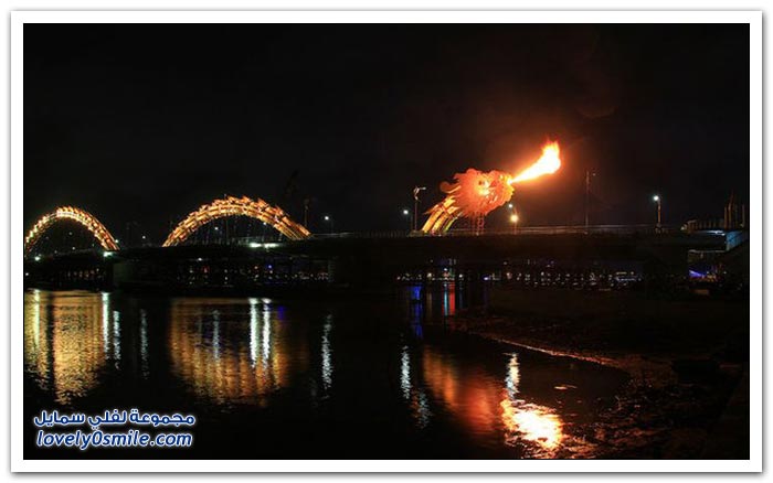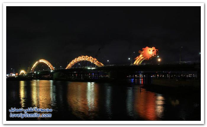 * إذا كنت مللت من الجسور في مدينتك وترغب في التغيير، فربما فيتنام تقدم حلاً مناسباً بتحويلها جسراً إلى تنين عملاق من النار. إلى جانب كون "دراغون بريدج" أكبر جسر في العالم، فإن الفيتناميين قرروا جعله أكثر إثارة من خلال إضافة نظام إضاءة مكون من 15 ألف مصباح LED يعملان على تغيير لون جسم التنين بشكل رائع.