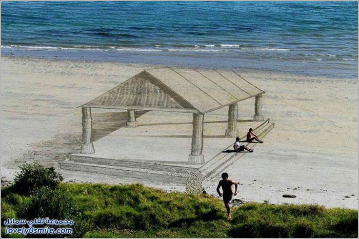 رسوم ثلاثية الأبعاد على شاطئ البحر للفنان جيمي هاركينز