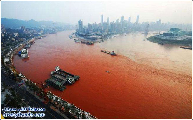 نهر اليانغتسى في الصين أصبح أحمر نتيجة الفيضانات