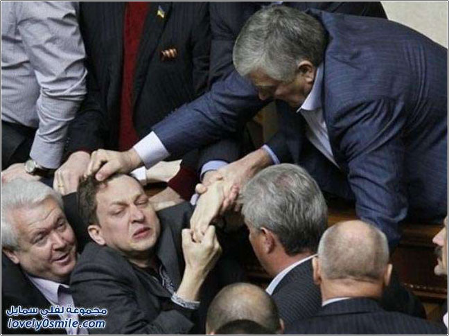 صور قنابل دخانية ولكمات وبيض في البرلمان الأوكراني