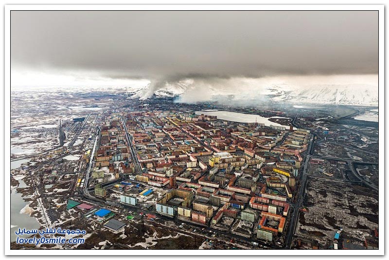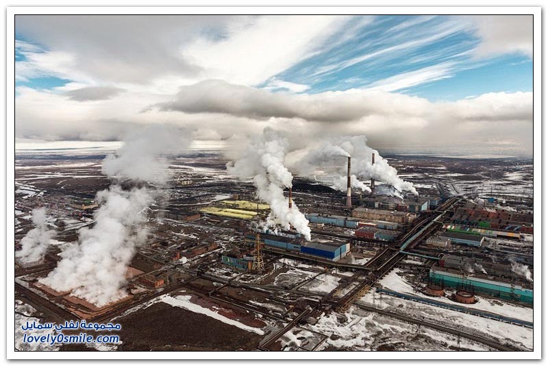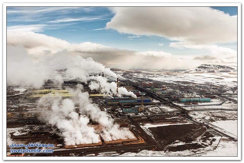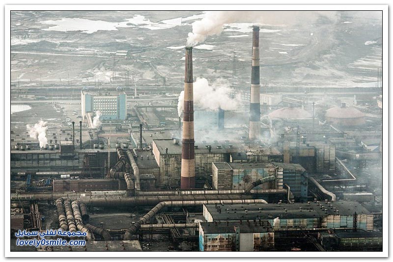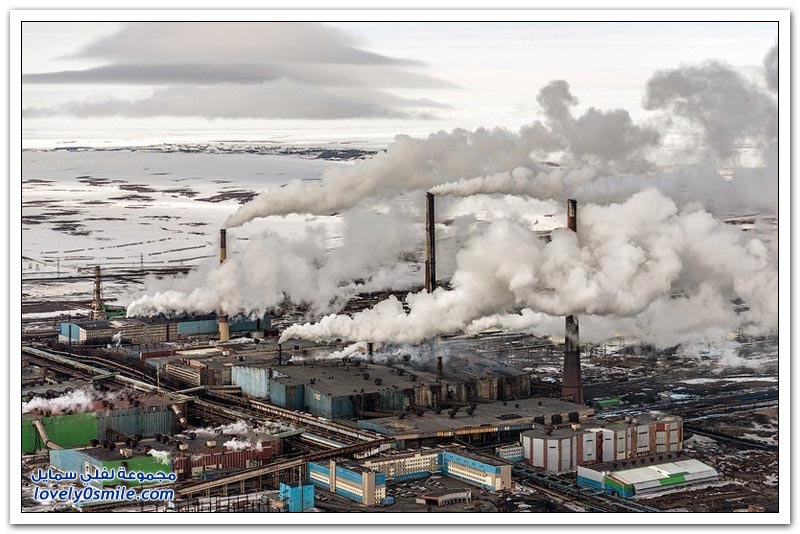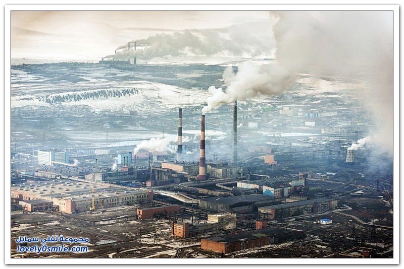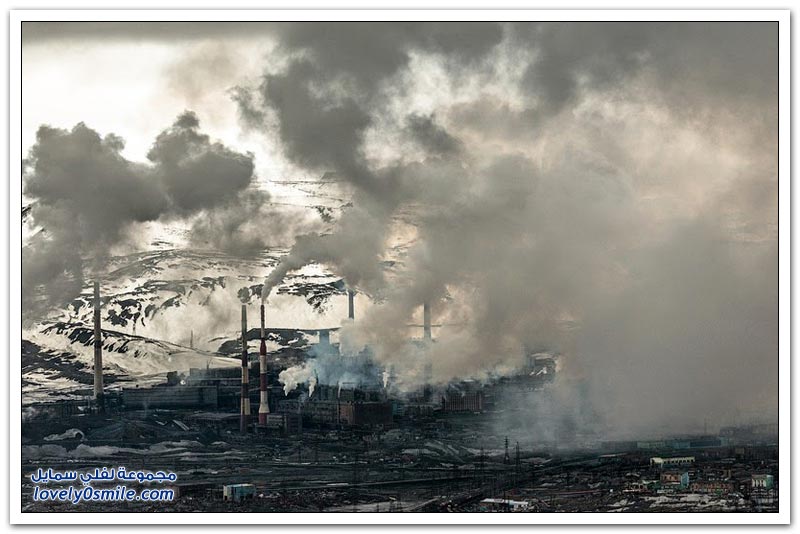 - مع ذلك فإن أكبر مشكلة تعاني منها نوريلسك ليست البرد بل التلوث. إذ تنتشر في الهواء سنويا مخلفات ما يقرب من 4 مليون طن من النحاس والرصاص والكادميوم والنيكل والزرنيخ والكبريت والمواد الكيميائية السامة الأخرى.