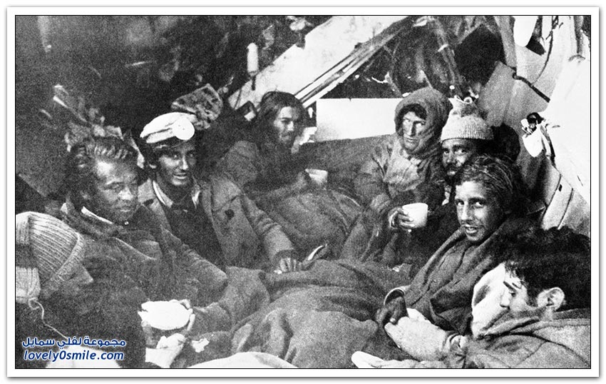 - وكان برج المراقبة في مطار سانتياجو قد تلقى أخر رسالة لاسلكية من الطائرة في الساعة الثالثة والنصف مساء بالتوقيت المحلي. وبدأ الناجون وهم على الأرض يدركون رويدا مدى الورطة التي وقعوا فيها: كانوا على ارتفاع 4 ألاف متر وفي درجات حرارة منخفضة قد تصل إلى 30 درجة مئوية تحت الصفر مع القليل من الطعام فقط وجسم الطائر المحطمة كمأوى ضد الرياح والثلوج. وكان الوقت يمر وهم على هذا الحال .