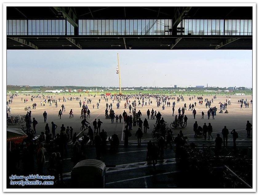 - ومع بداية العشرينات من القرن التاسع عشر, تم بناء مطار تمبلهوف في هذا الموقع. وبعد إغلاق المطار عام 2008, أعادت مدينة برلين استصلاح هذه الأرض الفضاء التي تبلغ 386 هيكتار وواحدة من أكبر مباني العالم في المنطقة المركزية لكي يستخدمها العوام.
