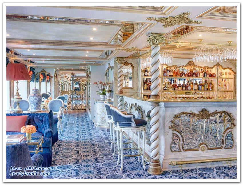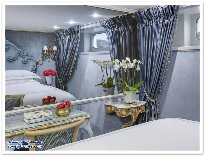 - وذكرت الصحيفة البريطانية أن غرف السفينة هيمن عليها اللون الأزرق الملكي بأسلوب العصر الباروكي، حيث تألقت الإكسسوارات والتفاصيل بالمريا المذهبة والأغطية المخملية والحمامات الرخامية والأسرة الإنجليزية الأنيقة.