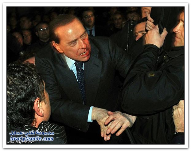 رئيس الوزراء الايطالي سيلفيو برلسكوني يتعرض لاعتداء عقب اجتماع سياسي في ميلانو