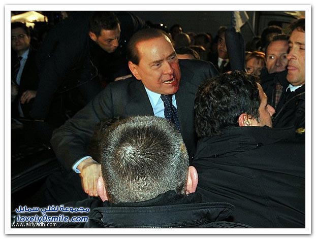 - وقد وصف برلسكوني نفسه في كلمته أمام الحشد ردا على منتقديه، وقبيل تعرضه للهجوم، بأنه "الشاب الوسيم".