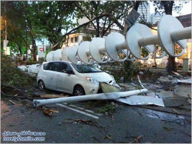 لحظة سقوط برج هوائي من ناطحة سحاب في ماليزيا