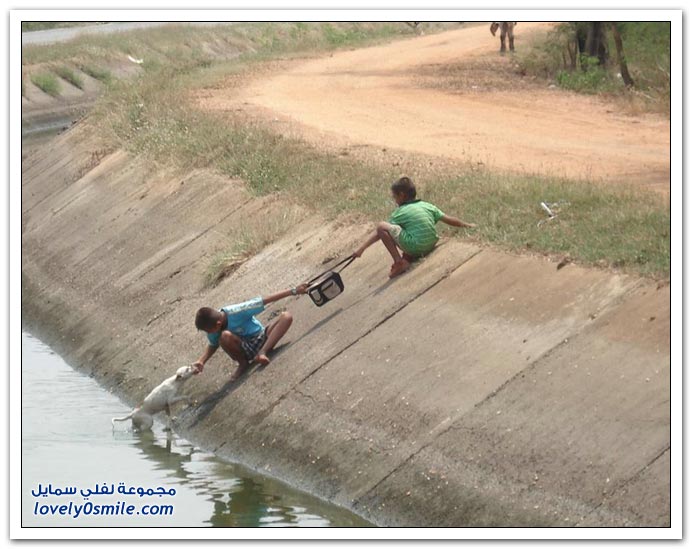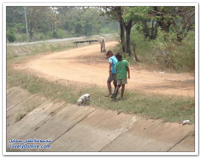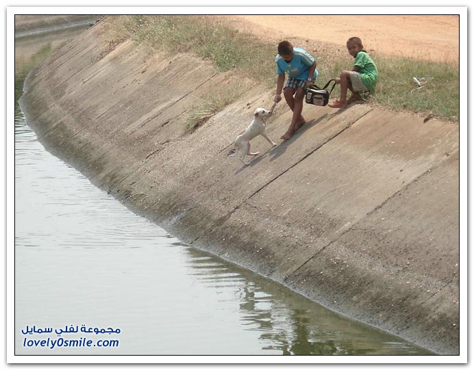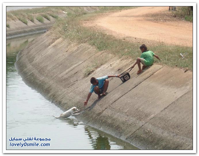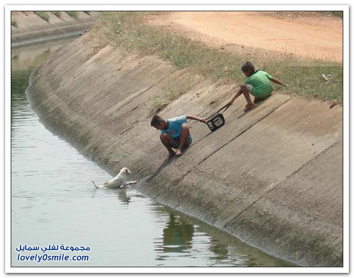 مشهد رائع في تكاتف الطفلين لمساعدة الكلب