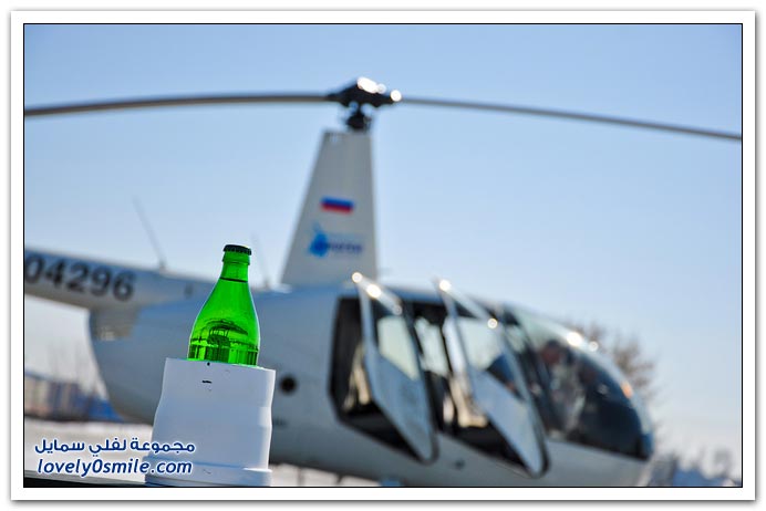 طيار هليكوبتر محترف يفتح قارورة أثناء الطيران
