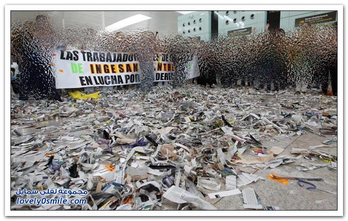 إضراب عمال النظافة في مطار شرم الاسباني في برشلونة