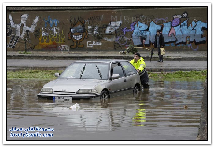 عاصفة شديدة وأمطار غزيرة هطلت على لبنان تسببت بوفاة شخصين على الأقل وقطع الكهرباء وإلغاء الدراسة يومي الثلاثاء والأربعاء