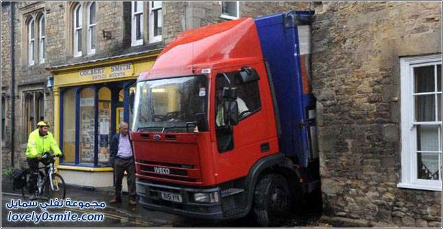 شاحنة تعلق بشارع ضيق في بريطانيا