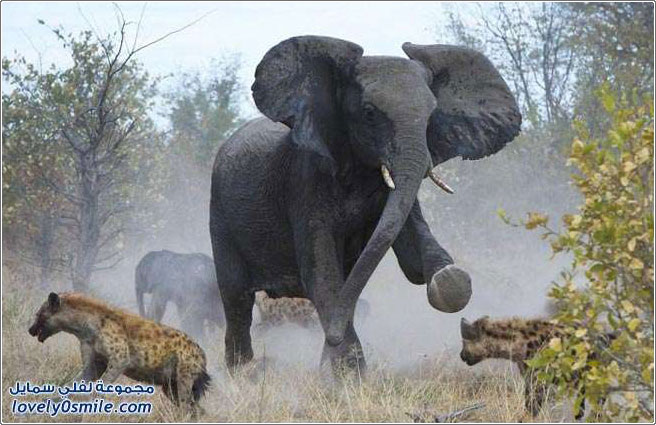 فيلة تقاتل ضباع دفاعاً عن طفلها