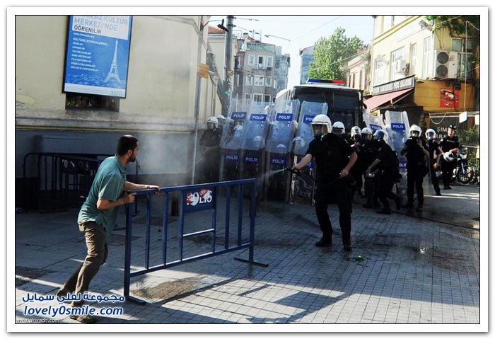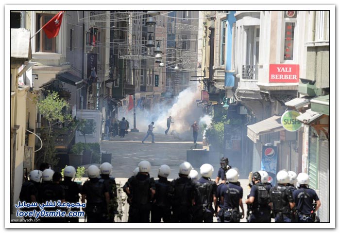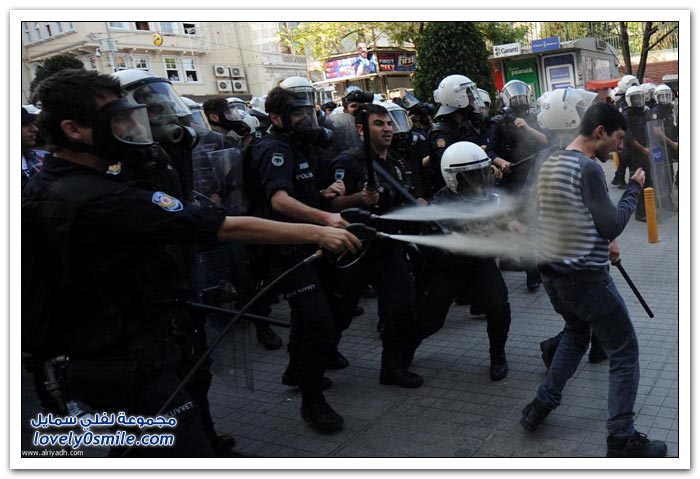 اندلعت مظاهرات باسطنبول احتجاجا على عزم الحكومة اقتلاع نحو 600 شجرة في ساحة تقسيم لبناء ثكنة عسكرية أثرية.