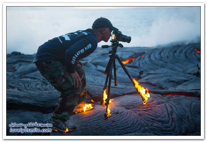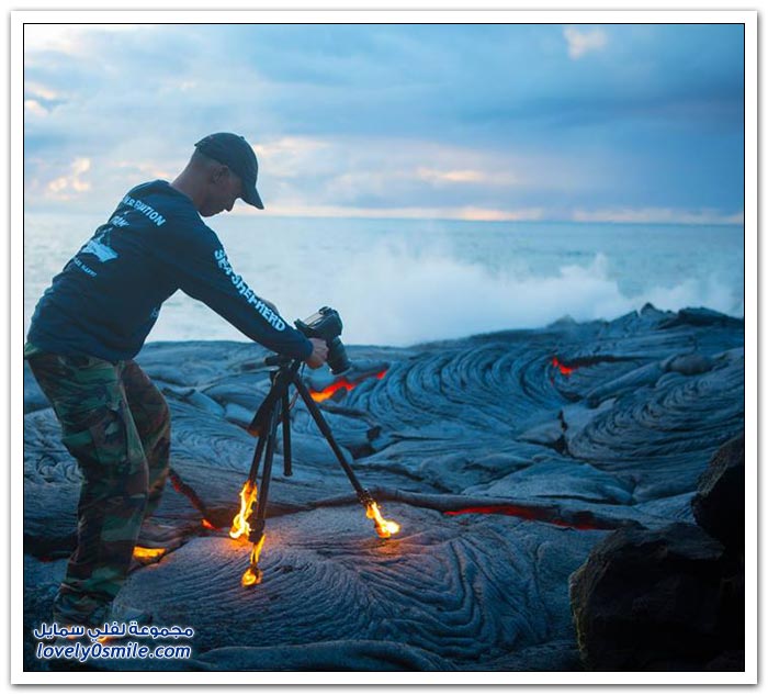 اشتعال النار في كامرة التصوير أثناء تصوير الحمم البركانية
